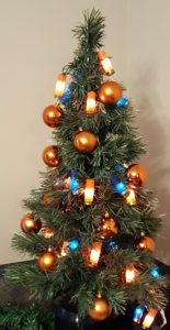 Hi Everyone! It’s no news that Adam and I are not sports fans. Unless it have something to do with hunting and fishing, forget it. However, my family is have been Syracuse University Fans forever! A few years ago, Adam made my brother, my dad, and my nephews shot gun shell lights that were orange and blue SU colors. This year when we went to my nephew, Brandon’s house, we saw the lights again. In fact, he had a whole tree just dedicated to SU.